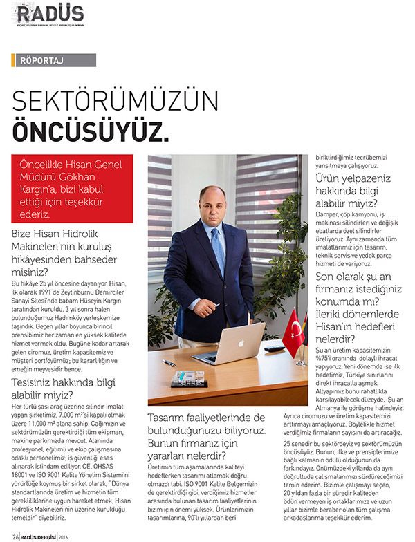 İnsanoğlu varlığının başlangıcından beri sürekli bir devinim halindedir. Doğar, büyür. Büyürken değişikliklere uğrar. Kendisiyle birlikte etrafında olup bitenleri de değiştirmeye başlar. Değişim, gelişimi ve gelişim de ihtiyaçları doğurur. Lambanın icadından, otomobil sektörünün büyümesine, abaküslerden, bilgisayarlara geçişe kadar... Hepsi ilerleyen zamanın akışkanlığına daha hızlı uyum sağlamayı arzular. Hidrolik silindirler, bilinenin aksine her gün etrafımızda gördüğümüz birçok küçük, büyük makinelerin ve ürünlerin içerisine karışıp, gelişen teknolojiyle birlikte hayatımızı çok daha kolaylaştırmaktadır.